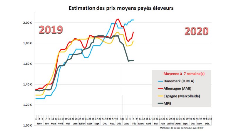 En Allemagne, la faiblesse de l’offre fait le prix. En effet, depuis le début de l’année, les abattages des 6 premières semaines sont en retrait de près de 4% par rapport à la même période 2019, soit déjà une baisse de 210 000 porcs environ. Toutefois, si les poids sont en baisse régulière, ils restent plus lourds qu’en 2019. Cette situation crée une bonne demande sur le marché du porc vif et profite au prix. Sur le marché de la viande, la demande est jugée assez calme, la période du carnaval étant synonyme de ralentissement du commerce sur le marché intérieur, tandis que le marché à l’export subit les conséquences de l’épidémie du Coronavirus en Chine qui est confrontée à de nombreux problèmes de logistique, en raison des mesures de confinement de la population et des restrictions de circulation.