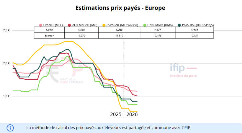En Europe, les marchés porcins restent sous tension : recul des prix en France, équilibre fragile en Allemagne, volumes espagnols toujours orientés vers l’UE et situations contrastées en Belgique et en Italie.