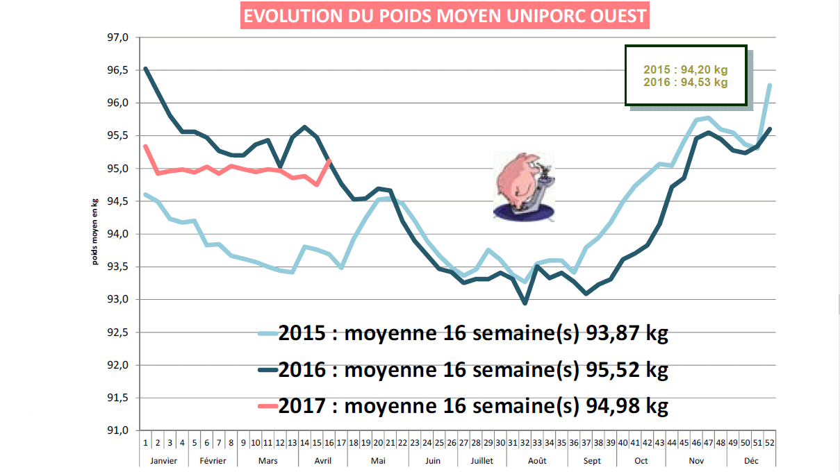 Cette faiblesse de l’offre devrait se poursuivre encore quelques mois au vu de l’augmentation ininterrompue des prix des porcelets partout depuis le mois de novembre 2016. Ce rééquilibrage offre / demande a inévitablement abouti à des reconductions des cours sur la plupart des places de cotations. Le regain de demande à l’approche des fêtes Pascales avait donné lieu à des hausses de prix durant 3 semaines successives et si cette frénésie est à présent retombée, la demande est encore bonne partout. Dans le nord de l’Europe comme en France, une vague de froid est venue contrarier les ventes des produits à griller reportant les achats sur d’autres pièces. En Allemagne, où la neige a fait son apparition dans certaines régions, la traditionnelle saison des asperges débute et leurs prix de vente favorisent le commerce du jambon. Le marché de fin de semaine d’ISN clôture à + 4 cts sur fond de demande soutenue.
