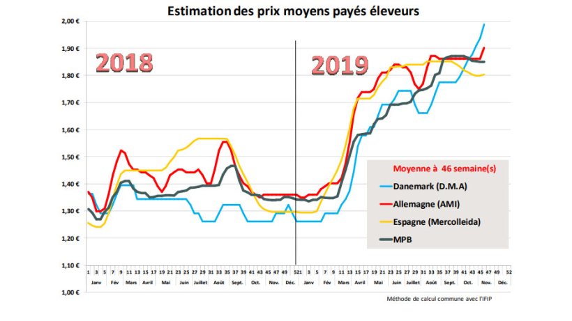 La réduction de l’activité liée aux 2 fériés de ce début novembre a permis de relâcher la pression exercée sur les abattoirs dans la recherche de leur approvisionnement. Cela s’est traduit par la stabilité du cours à l’issue des 2 séances hebdomadaires à 1,681 euro. L’extrême activité à 396 000 porcs abattus dans la semaine placée entre les 2 fériés ne laisse aucun doute sur un rapide retour à la fluidité. Le bon niveau d’abattage de cette dernière semaine fériée à 321 492 porcs traduit une demande soutenue, en particulier en provenance de la Chine. Les poids moyens continuent de progresser à 96,63 kilos (+ 280 g). Ce niveau élevé des poids moyens peut surprendre alors que l’activité est bonne mais il peut s’expliquer par l’intérêt des éleveurs à produire de porcs lourds au niveau actuel du prix du porc. La production s’engage à présent sur une période de 4 semaines d’activité pleine et soutenue avant le ralentissement traditionnel lié à la période des fêtes. Nul doute que les entreprises françaises s’attacheront, elles aussi, à honorer les contrats établis avec leurs partenaires chinois ou autres, assurant ainsi une activité élevée, facteur de soutien du prix à la production.