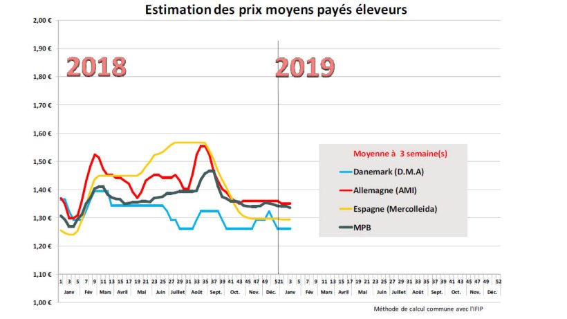 Ce mois de janvier 2019 ne déroge pas à la tradition avec pourtant quelques différences comme le démontre la longue période de stabilité de la référence officielle allemande, reconduite pour la 14ème semaine consécutive, ce qui constitue un record. Certes, l’offre allemande est abondante et les poids élevés, mais on note déjà, dans certaines régions, un retour rapide à la fluidité, pour ne pas parler de déficit d’offres. Pour autant, la demande est faible et sur le marché des pièces, des concessions de prix sont nécessaires pour favoriser les ventes, tandis que l’arrivée du froid pourrait dynamiser le secteur de la transformation sur des produits de saison. Pour pallier cette absence de commerce, le recours à la congélation à faibles coûts est de rigueur comme chaque année. Sur les autres grands marchés du nord de l’Europe, les orientations de prix ont été différentes selon les pays : en Belgique, le cours du kilo vif a baissé de 2 cents, sous la pression des abattoirs tournés particulièrement vers l’export et qui souffrent de la forte concurrence rencontrée sur les marchés de l’Europe de l’Est, et ce, malgré des tarifs compétitifs. Sur le marché intérieur, la situation est meilleure avec un marché de la viande stable. En Autriche, le cours s’est également replié de 2 cents, car l’offre reste largement supérieure aux besoins des abattoirs qui font également valoir une faiblesse des ventes sur les marchés européens en raison de la présence de concurrents très offensifs. Ce recul du prix permet aux entreprises de s’aligner sur les tarifs concurrents et notamment allemands. A l’inverse, le prix d’acompte danois est resté stable pour la 4ème semaine consécutive, il est toutefois inférieur de 6 cents à la même semaine 2018. La stabilité est de mise aussi aux Pays-Bas.
