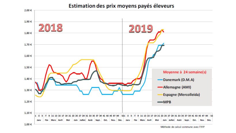 A l’inverse, le prix d’acompte danois poursuit sa hausse en reprenant 3 cents et en élargissant ce nouveau prix aux gammes de poids supérieurs qui haussent de 5 et 8 cents. Ce nouveau prix d’acompte danois est record pour cette période de l’année depuis le passage à l’euro et traduit les volumes élevés réalisés à l’export.