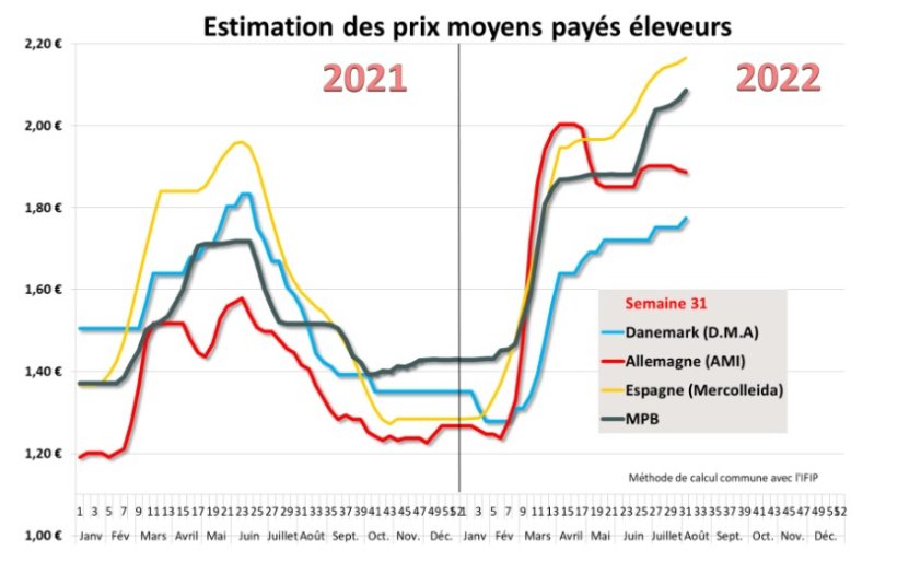 En Belgique, le marché est plus détendu entre une très forte baisse de l’offre et une bonne demande de carcasses. En raison d’un important abattage de truies ces derniers mois et du nombre croissant de places vides, la production en Belgique pourrait à terme baisser de 10 à 15 % ! Bien que les conditions soient favorables à une revalorisation du cours, le marché belge a suivi l’exemple allemand. De même le Danemark en stabilisant son prix d’acompte, n’a pas réitéré sa hausse de la semaine précédente.