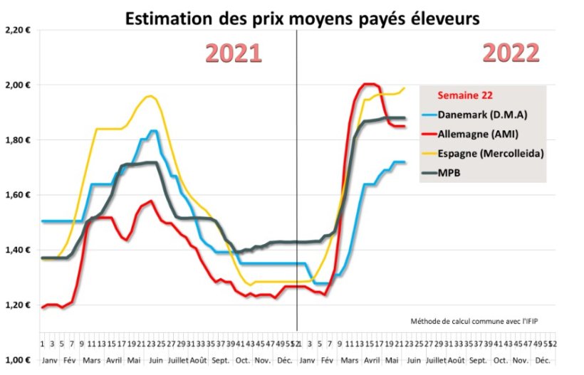 Au Marché du porc Breton, pour la cinquième semaine consécutive, le cours du porc s’affiche à 1,698 euro. Cette semaine commerciale, placée entre 2 semaines à jour férié, n’a pas nécessité un approvisionnement supplémentaire pour les abattoirs qui disposent de suffisamment de porcs pour une consommation, certes dynamisée par les fériés, mais qui reste malgré tout impactée par une forte inflation. D’autre part, dans un contexte européen de prix stables et de concurrence acharnée sur un marché de la viande surchargé, l’évolution du prix du porc est plus laborieuse. Seule, la baisse franche des offres peut inverser la tendance comme observer sur d’autres marchés européens. L’activité d’abattage de cette semaine précédant la Pentecôte s’est élevée à 379 017 porcs, les poids moyens à 95,04 kilos n’ont repris que 134 grammes après la baisse d’activité liée au jeudi de l'Ascension.