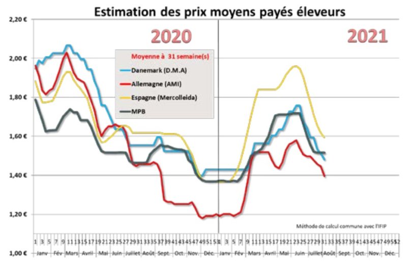De même au Marché du Porc Breton, le cours du porc est resté stable à l’issue de cette première semaine d’août. Les abattages de la semaine écoulée se sont élevés à 371 924 porcs, ce qui place l’activité de cette semaine 31 au-dessus de mêmes références des années antérieures (358 000 porcs en moyenne de 2013 à 2020). Les poids moyens ont reculé de 68 g à 94,71 kilos.