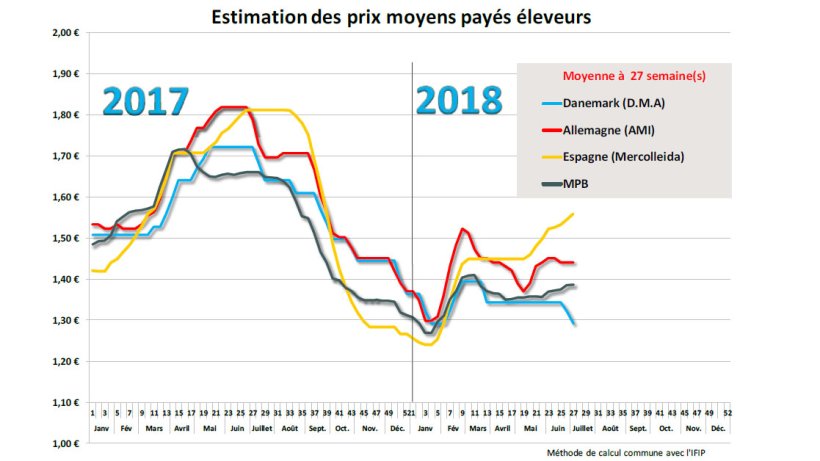 L’offre est partout faible, illustrée par la chute des poids, accentuée par l’apparition des températures élevées qui freinent la croissance des animaux. Comme chaque année dans le nord de l’Europe, l’été est synonyme de moindre demande avec le déplacement vers le sud d’une partie de la population. C’est le cas en Allemagne où aucune impulsion n’est attendue pour ce début d’été. La demande de pièces à griller reste bonne mais les ventes de jambon sur les marchés intérieurs et extérieurs sont décevantes. Cet équilibre de marché entre une offre faible et une demande atone a conduit à la stabilité du cours allemand tout comme en Belgique, aux Pays-Bas, en Autriche ; après 5 cents de baisse en 2 semaines consécutives, le prix d’acompte danois s’est, lui aussi, stabilisé.