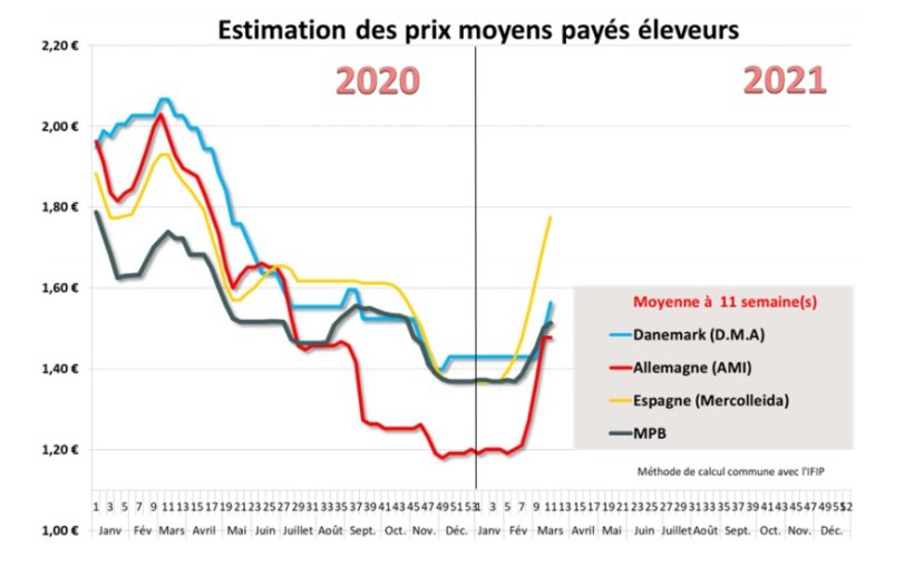 Cette situation est identique sur le marché belge dont le prix du kilo vif a suivi la tendance allemande. Il en est de même sur l’ensemble des places de cotations en Autriche, au Danemark, ainsi qu’aux Pays‐Bas.