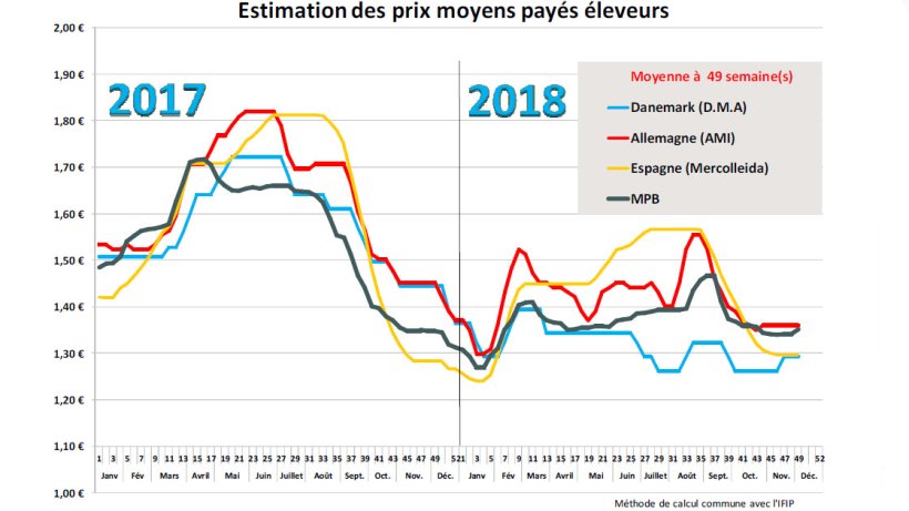 En Espagne, le cours avait été reconduit pour 15 jours, le jeudi 6 décembre étant férié en Espagne. Pour autant, l’activité d’abattage n’a pas été trop impactée, les entreprises souhaitant profiter de la bonne demande actuelle pour travailler au maximum de leur capacité avant le traditionnel ralentissement de fin d’année. En Espagne aussi, les prix bas à la production profitent aux entreprises qui confortent leurs marges. Il n’en reste pas moins que les offres sont élevées et les poids sont encore à la hausse, se rapprochant à présent des mêmes références 2017.