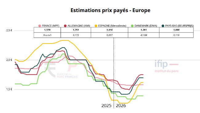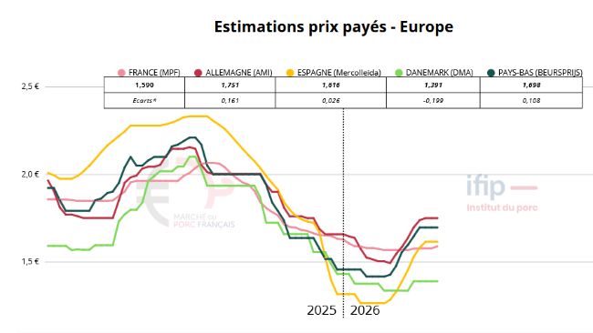 Prix stables en France et Allemagne, forte pression en Espagne à cause de la FPA, amélioration en Belgique et tensions persistantes en Italie.