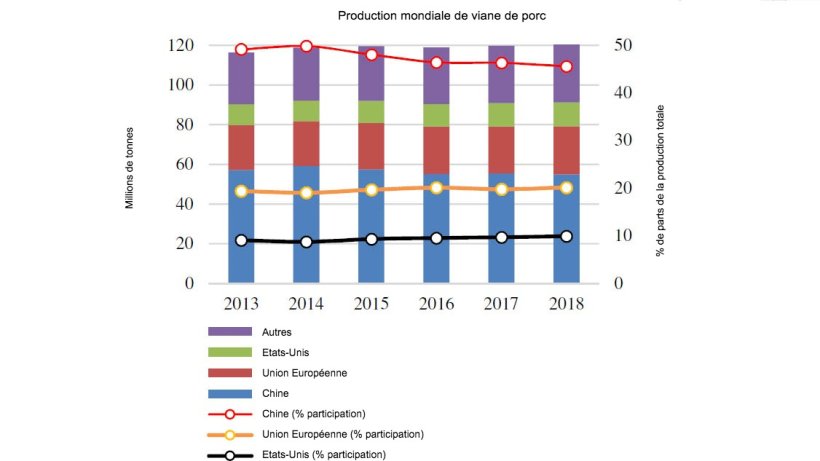 Selon la "Révision du marché de la viande de la FAO : Résumé de l'évolution du marché mondial de la viande en 2018", la production mondiale de viande de porc en 2018 est estimée à 120,5 millions de tonnes, enregistrant une croissance marginale de 0,6% par rapport à 2017.