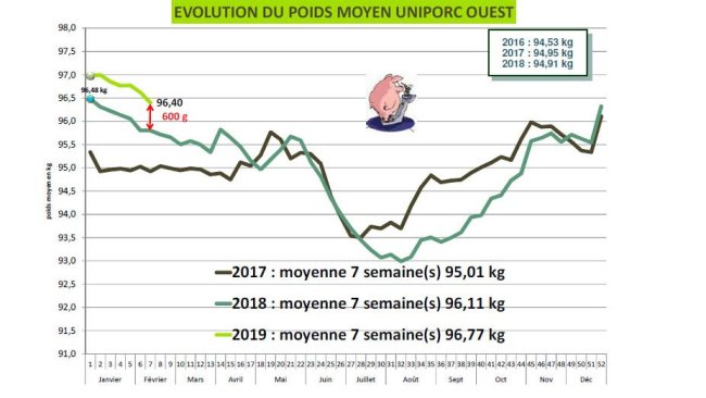 L'année 2018 est marquée par l'absence de rebond du cours du porc charcutier, habituellement constaté au début du printemps jusqu'à l'été (voire évolution des prix), ainsi que par le niveau résolument bas du cours. A 1,37 €/kg en moyenne sur l'année 2018, il est inférieur de 0,18 €/kg à celui de 2017 et de 0,14 €/kg à la moyenne 2013-2017. En France comme en UE, les prix sont bridés par la forte concurrence internationale, notamment américaine, en termes de niveaux de prix et d'apports de volumes.