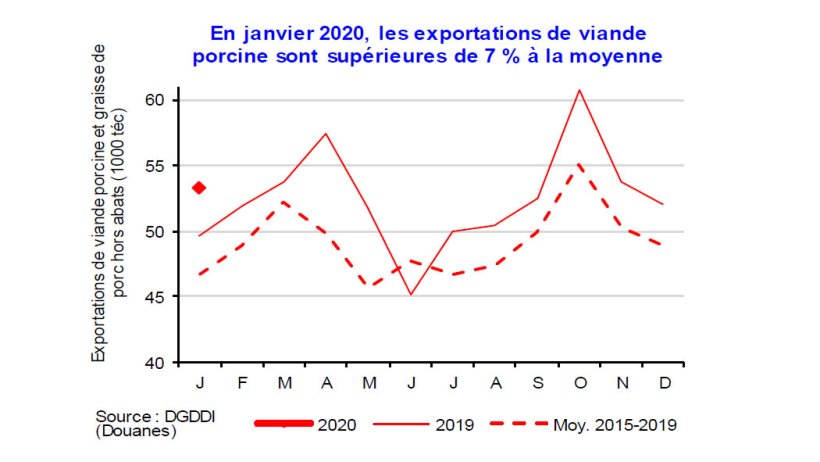 En janvier 2020, les exportations de viande porcine ralentissent vers les pays tiers.