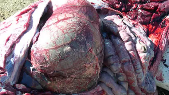 Quelle est cette lésion sur une truie reproductrice qui vient de mourir ?