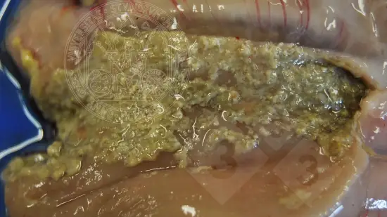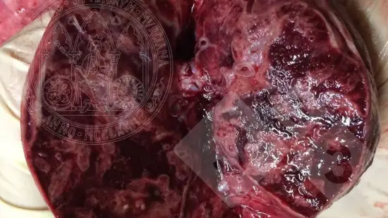 Quelle est la cause possible de cette lésion trouvée lors de l'autopsie d'un animal présentant de la fièvre et de la léthargie?