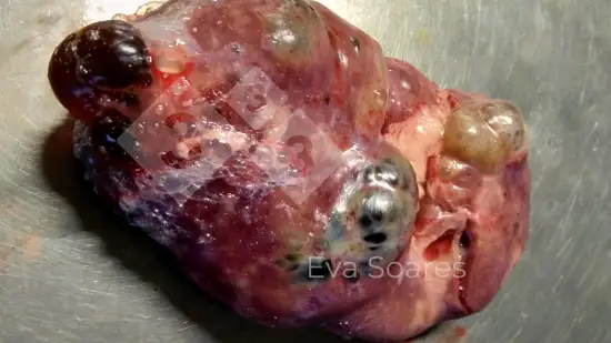 Cet animal a présenté un tableau de problèmes respiratoires. Quelle peut être la cause de ces lésions dans les poumons?