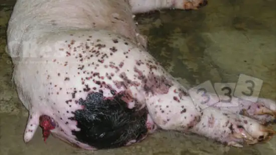 Quel type de lésion est observée sur la peau de cet animal ?