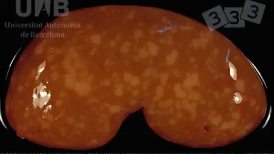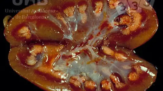 Quelle lésion peut être observée sur ce rein ?