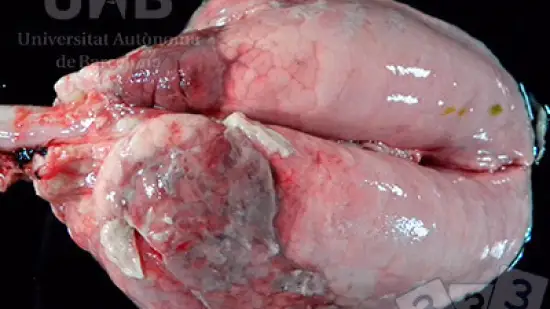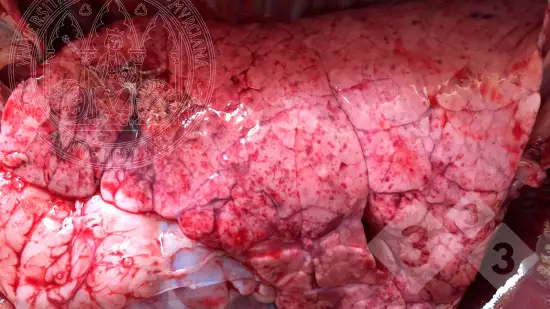 Qu'est-ce qui peut provoquer ces changements inflammatoires dans les poumons d'un porc charcutier ?
