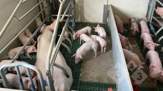 La portée entière de gauche est très pâle par rapport à celle de droite. Ces porcelets sont sevrés aujourd'hui, âgés de 28 jours. Qu'est-ce qui peut provoquer cette décoloration ?