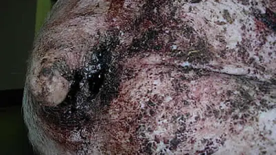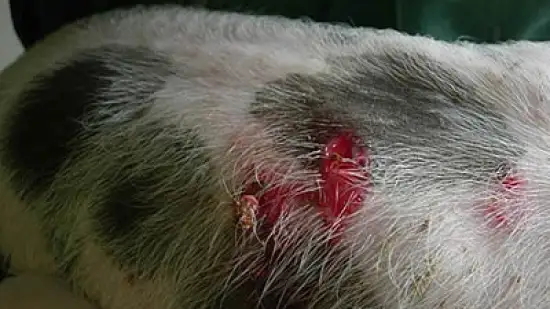 Cette lésion de la peau sur un porcelet de 10 kg sevré depuis 8 jours est-elle due à :