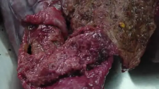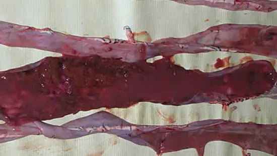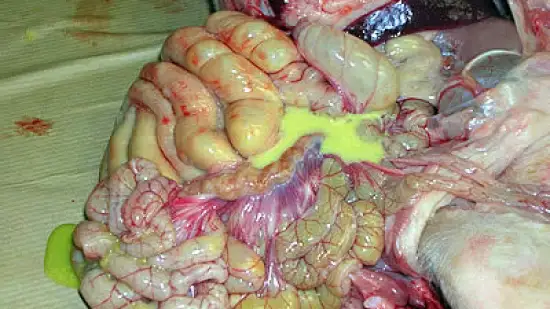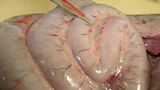 Que pensez vous de l'aspect de l'intestin à l'ouverture de ce cadavre ?