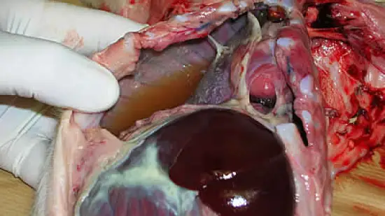 Quelle est la cause de cette pleurésie fibrineuse, accompagnée d'une péritonite sur un porcelet de 8 jours?