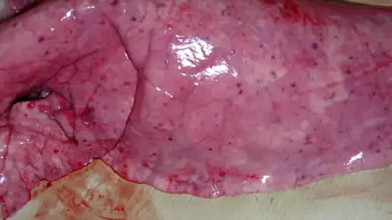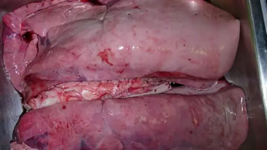 Quelle est l'explication de ces lésions de pneumonie sur un porc charcutier en mauvais état général