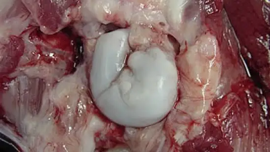Que vous évoque cette lésion de l'ombilic sur un porcelet de 8 semaines ?