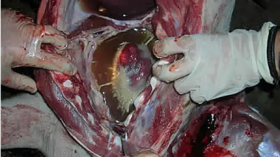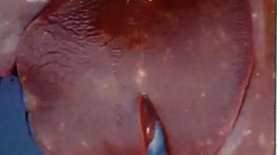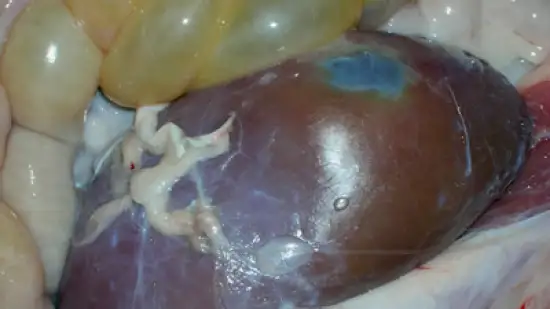 Les lésions (tâches blanches) observées sur ce foie sont-elles dues à: