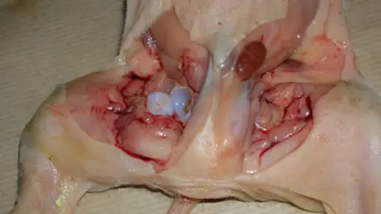 A quoi est due cette inflammation et hypertrophie d'un ganglion inguinal chez ce porcelet de 3 jours ?