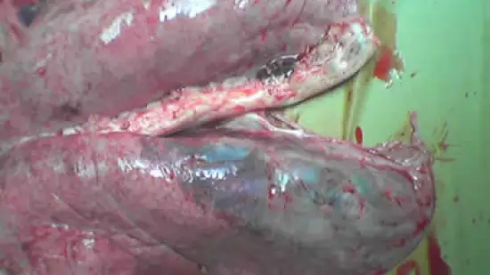 Quelle est la cause de cet oedème interlobulaire du poumon sur un porc d'engraissement ?