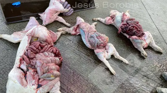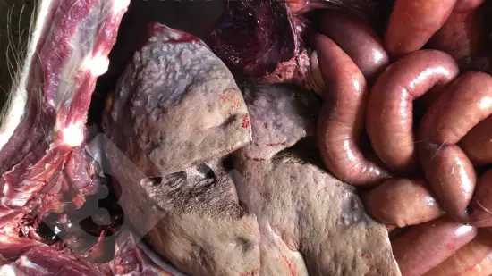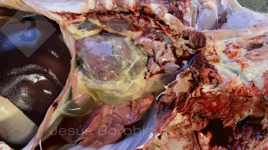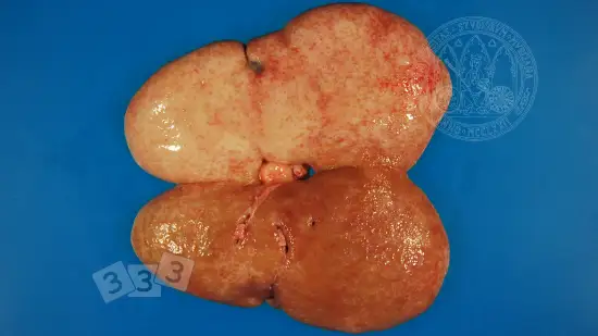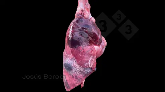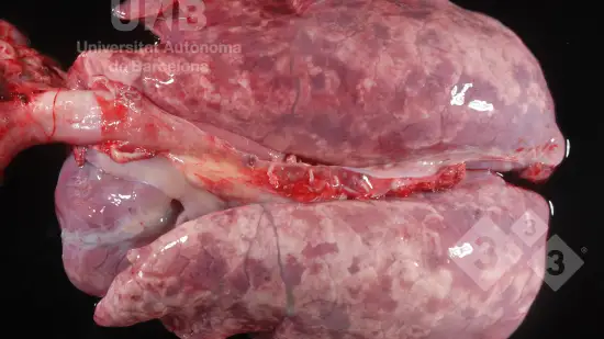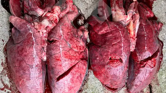 Ce porc de 50 kg est mort de streptococcie (Streptococcus suis 2) et voici l'aspect de ses poumons à l'autopsie.Qu'en dites vous?
