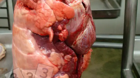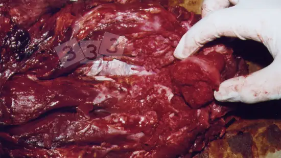Lors de l'inspection d'abattoir, une compression de la moelle épinière a été détectée sur cette carcasse. Quelle pourrait être la cause de cette lésion ?