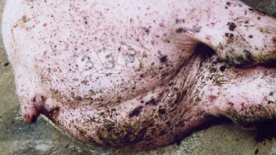 Les porcs d'environ 15 semaines développent des taches violettes sur les membres postérieurs qui s'étendent sur tout le corps. La mortalité est élevée. Quelle est la cause de cette lésion ?