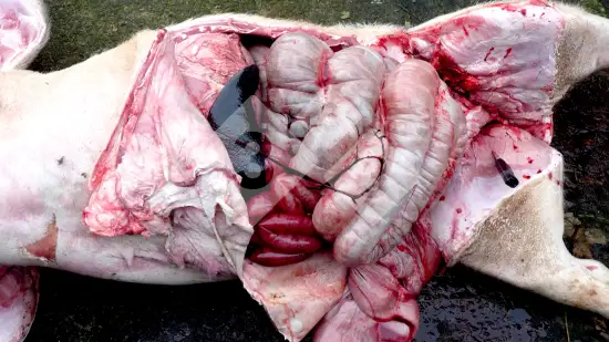 Truie avec des lésions cutanées saisie à l'abattoir. Quelle est la cause de ces blessures?