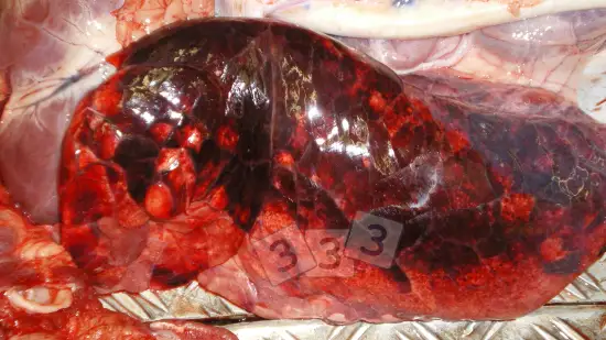 Les toux et les retardés ont augmenté sur l'élevage. Quelle est la cause la plus probable de cette lésion ?