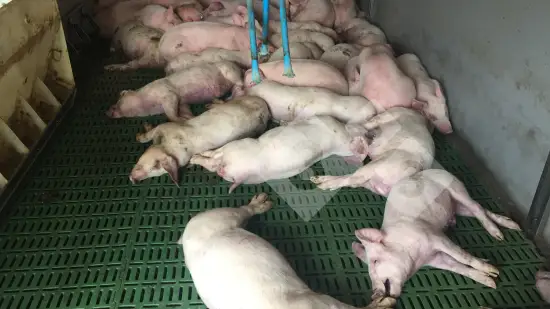 Dans un bâtiment , on trouve des porcs morts avec une cyanose des oreilles et dans les zones basses et distales. Certains porcs sont encore en vie, mais abattus. Que 'est-il passé ?
