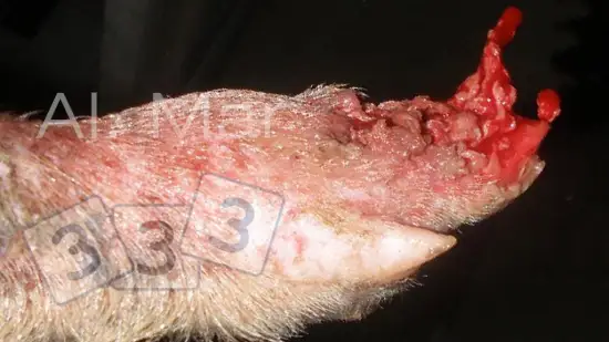 Quelle est la cause de cette lésion sur le membre antérieur d'un porc ?