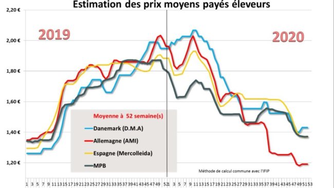 L’IFIP a utilisé pour sa comparaison le "Hog and Corn ratio", ratio entre le prix du porc et le prix du maïs, qui est un indicateur intéressant pour suivre l’évolution des marges en élevage à l’échelle d’un pays.