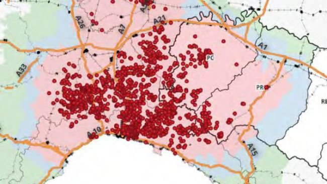 Le nouveau foyer est à nouveau situé à quelques kilomètres de la frontière avec la France, à environ 104 km à vol d'oiseau