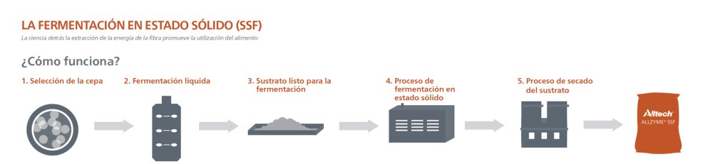 Las tecnologías nutricionales enzimáticas para el alimento balanceado, como Allzyme® SSF, se han utilizado en diferentes aplicaciones que van desde la salsa de soya hasta la enzimas digestivas para las dietas. Allzyme® SSF es un complejo enzimático único que favorece la rentabilidad, al maximizar el potencial de las raciones para cada etapa de crecimiento. Desarrollada a través de la fermentación en estado sólido (SSF, por sus siglas en inglés), el complejo multienzimático de Allzyme® SSF actúa en sinergia con el alimento terminado, optimizando los nutrientes (incluidos los aminoácidos, la energía, el calcio y el fósforo), a la par que mejora la utilización de las materias primas (Gráfico 1).