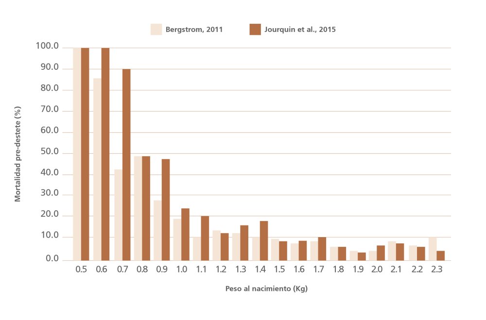 La genética ha tenido en los últimos años un papel importante en la mejora del desempeño de las cerdas, al aumentar el número de lechones producidos por cerda/año. Pero a medida que aumenta el tamaño de la camada, el peso al nacimiento del lechón disminuye y se incrementa la variabilidad del peso de los lechones. El bajo peso al nacimiento es un factor importante que influye en la mortalidad pre-destete (Gráfico 3). Y los pesos más bajos al destete a menudo provocan un menor crecimiento y canales con más grasa.