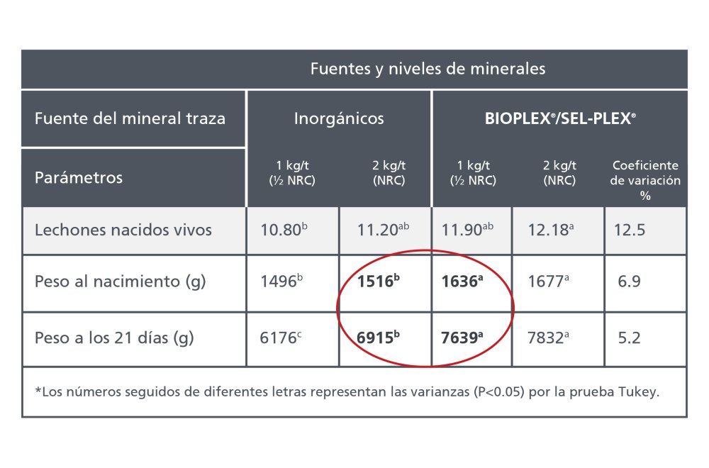 - Incrementar el peso al nacimiento de los cerdos más pequeños de una camada, al cambiar la fuente de mineral con la que se alimenta a la cerda: de minerales traza inorgánicos por orgánicos (Kalaw et al., 2009).
