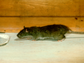 En la foto superior se observa una rata que intenta investigar manteniendo su cuerpo lo más alejado posible del objeto. Pueden pasar varias semanas hasta que "acepten" el cebo o la estación de cebado.
