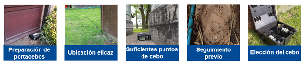- Es importante utilizar el cebo más apetecible, para que los roedores lo acepten rápidamente como fuente de alimentación.