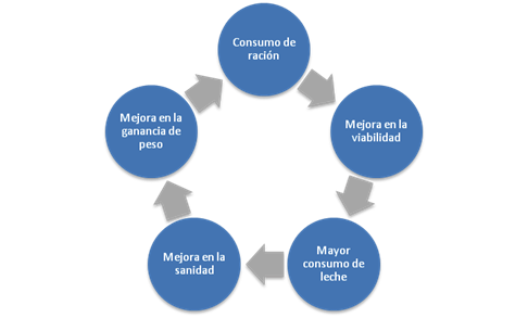 Es bien conocido que las cerdas no consiguen producir la cantidad de leche necesaria para alimentar a camadas numerosas, es por eso que en actualidad se usa de forma rutinaria el suministro de alimento a los lechones, aún estando en plena fase de lactancia. Según BARNETT et al., (1989), esta estrategia aporta energía adicional y facilita la transición de un alimento líquido a uno sólido.