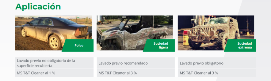 - Aplique MS T&T Cleaner uniformemente sobre el vehículo.