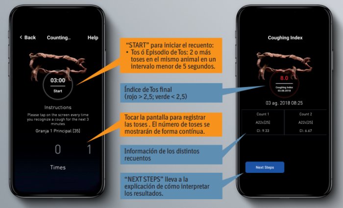 Las enfermedades respiratorias, causadas por Mycoplasma hyopneumoniae, por ejemplo, siempre se acompañan de tos. Por lo tanto, es esencial prestar mucha atención a la tos en las naves: ¿cuántos animales están tosiendo?, ¿con qué frecuencia están tosiendo? ¿hay otros síntomas? La evaluación de la frecuencia de la tos es difícil, subjetiva y depende de la experiencia personal. Por esta razón Boehringer Ingelheim ha desarrollado una aplicación para el cálculo del Índice de Tos: mediante el uso del teléfono móvil es posible contar y registrar de forma fácil y objetiva el número de toses en las naves.