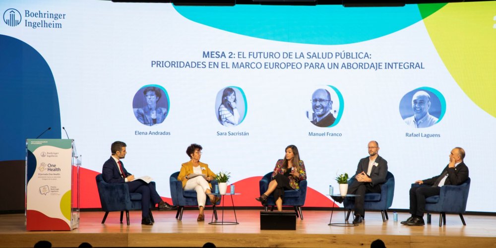 Madrid, 5 de octubre de 2022.- Boehringer Ingelheim ha celebrado la II jornada “One Health: avanzando hacia un abordaje integral de la salud” para impulsar el debate institucional y clínico sobre el concepto One Health, a la vez que muestra su compromiso a largo plazo con el concepto, con el fin de poder elaborar e implementar programas, políticas y leyes en pro de la mejora de la salud pública. De este modo, a través de tres mesas de debate, expertos multidisciplinares de diferentes ámbitos - veterinarios, médicos, farmacéuticos o gestores de salud pública - han tratado temas como los ODS (Objetivos de Desarrollo Sostenible) y el bienestar animal, humano y del planeta, el futuro de la salud pública: prioridades en el marco europeo para un abordaje integral y cómo comunicar, informar y educar para llegar a la sociedad.