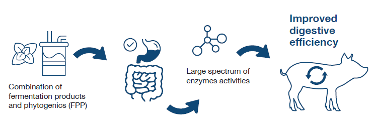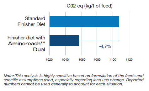 - Enabling lower crude protein level of the diet that has the potential to reduce carbon footprint of the feed and has been shown to lower N excretion from pig manure